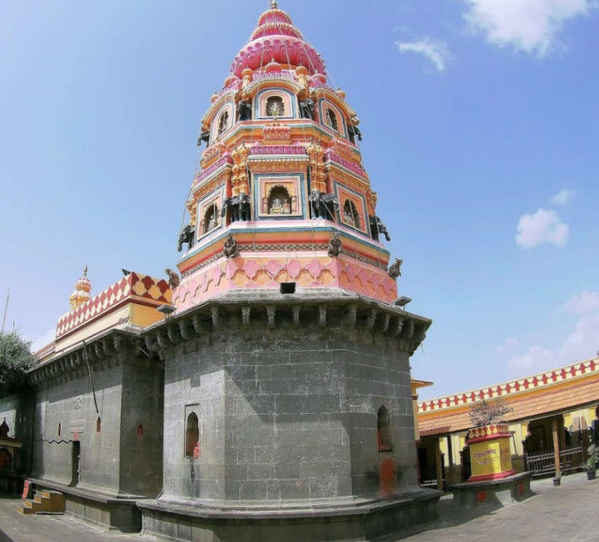Lord Ganesha is worshipped here as Mayureshwar, who defeated the demon Sindhu while riding a peacock.